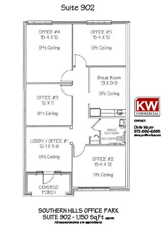 For Sale or Lease......Excellent Investor Property. For sale at $410,000. This office condo has a superior location in McKinney near the Hwy 121 growth corridor, 1,150sf of upscale office space. Nicely appointed interior with functional floor plan. Private Entrance, reception, break room, conference room or 4th office. ADA restroom located off the main hallway leading to 3 private offices / exam rooms. Crown molding throughout. 9 & 11 foot ceilings. Large windows & 2” blinds provide natural light. Attractive stone and brick exterior. Security System.