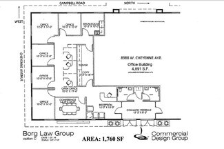 Brooksby Professional Center is located at 8988 W Cheyenne Ave is located on the north side Cheyenne between Fort Apache and El Capitan at Campbell. There is a 7 building office center to the west, and Brooksby Professional Center is a 4 building office park. Suite 150 is a well thought out office with a reception area, conference room, 5 private offices, break room, bullpen/open area and a server/copy room. The building is in great shape and move in ready. Easy to show.