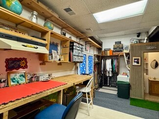 Calling all artists and independent professionals! Discover a highly visible, well maintained building in the heart of Greenfield, just steps from downtown. This space offers generous room sizes, high ceilings, and an inspiring layout, ideal for creating, displaying, or simply finding a quiet place to focus and grow your craft. The welcoming front room features a comfortable sitting area, perfect for an office, gallery-style display, or client reception. A spacious central room lends itself perfectly for a studio, dance or movement space, or open creative workspace. The rear workshop area includes shelving, countertops, a sink, and a half bath, an ideal setup for potters, painters or other artists. Also equally well-suited for designers and other professionals seeking a calm, inviting environment to work or meet with clients. It has parking, front, rear & side entrances. Convenient walkable location near the train station, courthouse, post office, library and restaurants.