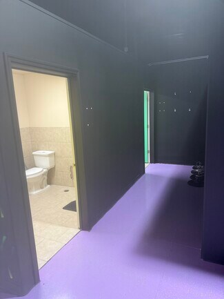 Former 2nd hand store and family arcade. Large open space with painted concrete floors, good lighting. There is a meeting room and a storage room, along with two half baths. There are two alley access doors for deliveries.