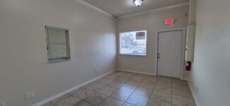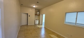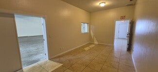 2800SF, zoned industrial with a reception area, office, restroom, shower and large garage with 5 overhead doors in front and the back, parking in front and back. The garage space is 43' wide and 45' deep The office space, ( under air ) is 11' wide and runs the length of the building. Office restroom includes a shower, and the garage bath has a slop sink and toilet.