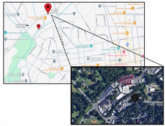 • Large parking lot across the street with more parking behind the building.