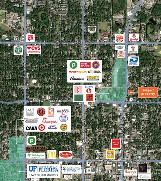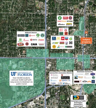 10,160 SF free-standing building with a drive-thru on 1.24 acres. Located at a signalized intersection with businesses nearby such as Publix, Burger King, Popeye’s, Zaxby’s, Hibbett Sports, PNC Bank and many more. Densely populated trade area with 146,186 residents and over 106,000 daytime employees within 5 miles. Located near downtown Gainesville, a 5-minute drive to the University of Florida Campus, and 10-minutes to Gainesville Regional Airport.