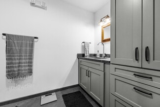 The warehouse features clear heights up to 21’2”, two surface-level roll-up doors (14’x20’ and 14’x16’ with drive-thru capability) and full insulation for energy efficiency. The property includes 15 on-site parking spaces, additional street parking and is fully fenced with automatic main drive gate for security. Advanced amenities include a 9-camera live security system, remote gate access, solar panels with battery backup and LED lighting throughout.