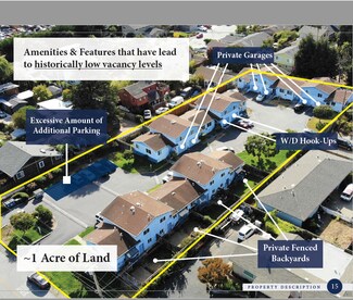 Located in the rare Pleasure Point neighborhood, 909 35th Ave offers an investor the unique opportunity to acquire three separate four-unit buildings, totaling 12 units, on almost one full acre of land. Each fourplex is roughly 3,000 square feet for a total building square foot offering of 9,000 square feet. All of the buildings are identical and offer an attractive unit mix of all two story, two-bed, one-bath units. The units amenities are superb and come equipped with large private fenced backyards, private enclosed garages & hook-ups for washer & dryers. Unlike most apartment buildings, 909 35th Avenue will offer a new investor close to an acre of land which has allowed many tenants to utilize their garages for additional storage or workshops. With Santa Cruz already a strong rental market, the continued strength of the Bay Area and Silicon Valley makes locations like Santa Cruz a more attractive choice for renters who are seeking amenitized units close to the beach, shops & restaurants.