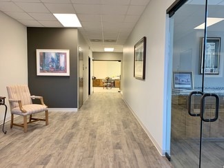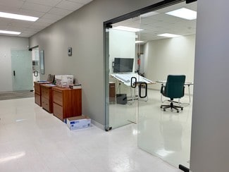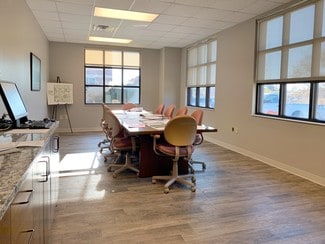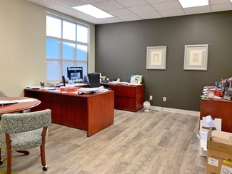 This space is ready for immediate occupancy. Enter into a well lit reception area flooded with natural light from the large glass front doors and windows. Attached to the reception area is a spacious conference room with large windows and cabinet space with a granite counter top. There are two large private offices, a large break room with a kitchenette, a spacious collaborative space that can be converted into multiple offices or a training area, and plenty of storage spaces throughout.