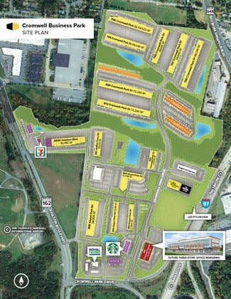 Cromwell Business Park is a 100-acre business community conveniently located directly off Interstate 97, with easy access to Interstate Cromwell Business Park is a 135-acre, 822,000 sq. ft. business community in Anne Arundel County, conveniently located directly off I-97, with easy access to I-95, the Baltimore-Washington Parkway (MD Rt. 295) and Md. routes 100, 176 and 648. Directly adjacent to BWI Airport, the park offers quick and easy connections to Baltimore, Washington DC, Annapolis, and Columbia. Amtrak, Maryland Rail Commuter (MARC), and light rail stations are located in the immediate area and the park is serviced by public bus transportation. The area is surrounded by a variety of business amenities, hotels, regional shopping centers, and restaurants at all price points.
