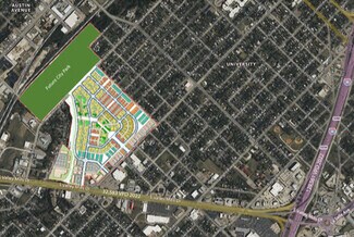 Previously the site for the Baylor University Floyd Casey Stadium, the land has been given a second lease on life to become the next hot spot for shopping and dining. The commercial zone will feature pad sites and extensive parking. Not shown are 250+ housing units attached to the project, a blend of multi and single family residences. In addition, the city is reimagining an adjacent park with a budget of more than $20 million allotted to the redevelopment.