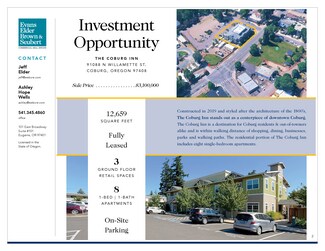 Constructed in 2019 and styled after the architecture of the 1800’s, The Coburg Inn stands out as a centerpiece of downtown Coburg. The Coburg Inn is a destination for Coburg residents & out-of-towners alike and is within walking distance of shopping, dining, businesses, parks and walking paths. The residential portion of The Coburg Inn includes eight single-bedroom apartments.