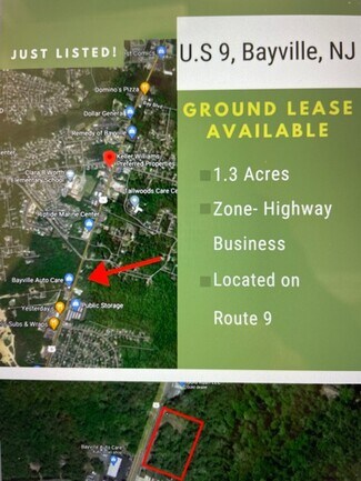 Located on Route 9 in Bayville, NJ. Surrounded by multiple businesses with lots of traffic flow. 1.3 Acres of land Contact us today at 732-664-1272