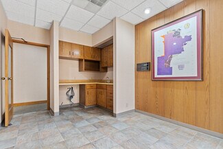 Spacious Layout: Includes reception and clerical areas, an executive office, 12 individual offices, a conference room with a divider, two fireproof file/safe rooms, a break room, three restrooms, and a break/kitchen area.