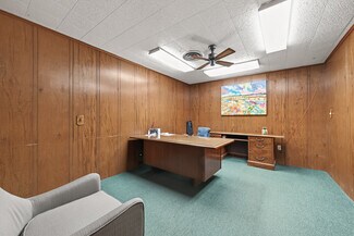 The site includes three buildings: an office building with 2 offices, restroom, and waiting area, a 49’9” x 39’8” storage building with drive in doors and second level storage / work space, and a three bay service station with a canopy, two restrooms, large storage room, and retail / checkout area. Spanning approximately +/- .77 acres, the property offers ample lot space suitable for many uses.