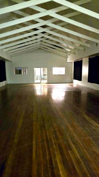 - A former church structure featuring a partially underground first level and a dramatic second level with beautiful high ceilings, exposed beams, and wood flooring—ready for someone's creative touch in adaptive reuse or redevelopment.