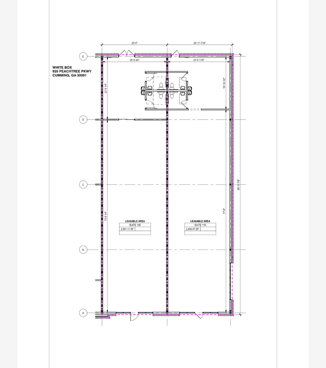 Only 2 Retail spaces available. Turnkey condition, great visibility, favorable demographics, end cap, windows on 2 sides Close to The Collections at Forsyth. Suite 105 - Available now - 2,501 SF Suite 110 - Available now - 2,493 SF ( Dimensions approximately 25ft X 100ft ) Suite 105 & 110 can be combined for a total of 4,994 SF Located on Peachtree Parkway (GA Hwy. 141) in the prestigious south Forsyth County/Johns Creek submarket of metropolitan Atlanta. Please state your desired use / business name when inquiring so that we may better assist you. For updated floor plans, rates, photos, etc, please visit the property website: https://commercial400.com/commercial_listings/?propertyId=1260124-lease Ceiling Clear Heights: Front: Bottom of deck: 15'-9" Bottom of joist: 13'-4" Back: Bottom of deck: 15'-6" Bottom of joist: 13'-2"
