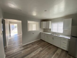 Remodeled Home with Three Additional Rental Units Unique investment or owner-occupant opportunity featuring a fully remodeled 2 Bedroom, 1 Bath front home with three separate 1-bedroom rental units located in the rear of the property. The front house has been fully renovated with new HVAC, new electrical, and new plumbing, along with luxury vinyl plank flooring, new cabinets, countertops, and appliances including a gas stove and above-range microwave. The layout includes a kitchen, family room, and laundry room with washer/dryer hookups, plus covered parking and a private yard. The front house is individually metered for electricity, while the three rear units are master-metered for water and electric, offering additional rental income potential.