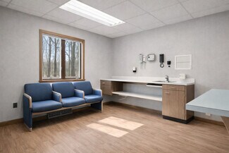 • Configured with five exam rooms, a reception area, and waiting lobby