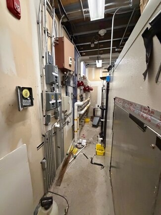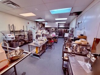 The culinary school features four spacious instructional rooms fully equipped with commercial kitchen infrastructure, including exhaust hoods, walk-in refrigeration and freezers, pantries, locker rooms, private offices, and restrooms.