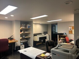 In regards to the office- Downstairs, there is a lobby/waiting area, conference room, 3 offices and a bathroom. Additionally, there are second floor offices with both, office and warehouse access, with 3 offices and a bathroom. Plus, additional warehouse bathrooms back on the first floor.