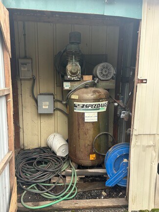 Electric service to the building is 400 AMP, 120/208 Volt, and 3 phase with an additional 200 AMP panel in back of the warehouse. The air compressor will remain at the sale with its own exterior housing in the back lot and is overhead piped to the storage shelter.