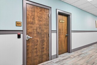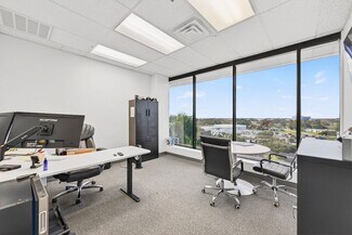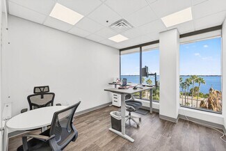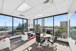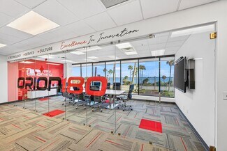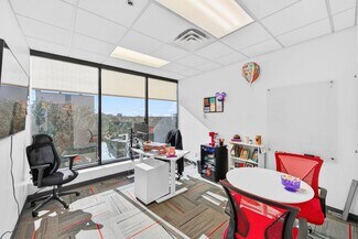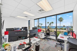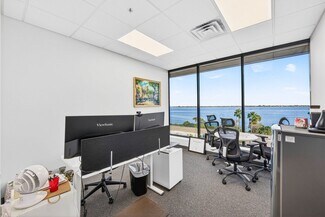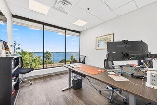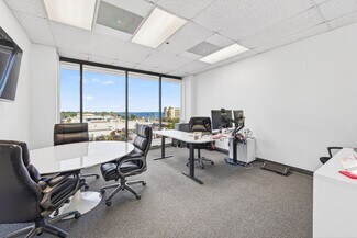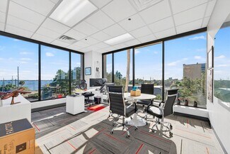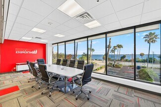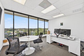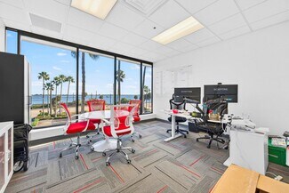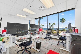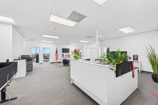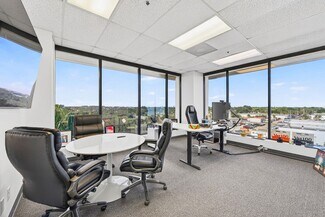 RENT SPECIAL. Free BASE RENT, pay only CAM for first 6 months of a multi year lease! 5th-floor, 2,085 sq ft Class A office suite with three river-view offices, three additional private offices, a large bullpen, and two secure storage rooms. Includes a break room with full refrigerator, two entrances, and access to common-area restrooms. Close to the airport and major employers, with strong visibility on Harbor City Blvd (32,000 cars/day). All offices include new solar shades, and the property offers ample parking.
