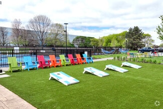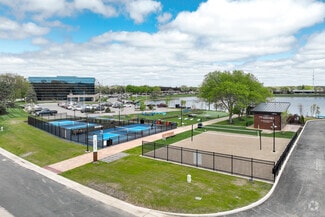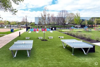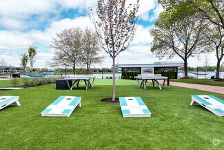 Sprawling throughout this buzzing campus is a robust collection of market-defining amenities. The Anchor is a full-service amenity center and the home of the property management office with a café, lounge, tenant-exclusive fitness center, and conference facilities. Accentuated by a bright and colorful overlay along the lake, The Boardwalk is a fitness area with a sports court, jogging path, and workout circuit. The Landing is a beautiful outdoor lounge where tenants enjoy multiple seating options, fire pits, and games, including cornhole, Giant Jenga, Bocce Ball, and horseshoes.
