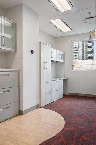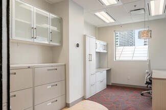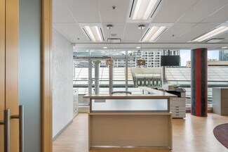 Highly functional layout consisting of a reception area, open plan work stations, filing nook, 2 private offices, and a kitchen/lounge/meeting room. Loads of natural light with direct access to a stunning private patio that overlooks the Vancouver Law Courts and Vancouver Art Gallery.