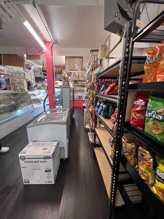 The ground-floor commercial space is home to a long-standing neighborhood grocery store with stable tenancy. Above the storefront are two spacious residential apartments, each offering four bedrooms, one full bathroom, a large living room, and an eat-in kitchen. Both units have separate private entrances, allowing for flexible use or future redevelopment potential.