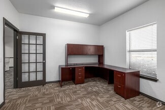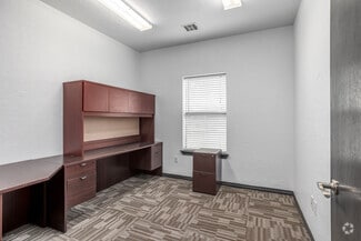The charming brick building spans 5,872 square feet after adding a north wing to nearly double the property’s size. It includes two covered entries, 21 private offices, two conference rooms, two private restrooms, men’s and women’s restrooms, storage spaces, and a spacious reception area. 9400 S I-35 Service Road also features a prominent pylon sign along the highway to maximize business identity.
