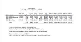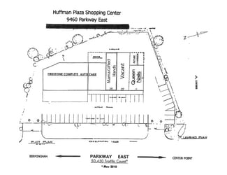 13,284 SF Retail Center on 1.21 acres The retail center houses Aculco Tires & Auto Care, Queen Nails, and two vacant 2,000 SF spaces The landlord is responsible for maintaining the roof and structure Tenants pay for their separately metered utilities (electricity, gas, and water) The landlord covers the cost of common outdoor lighting Property taxes are under protest with Jefferson County 50 paved and lighted parkway spaces Conveniently located on Parkway East, less than half a mile from I-59 access NOI AND CAP RATE ARE PROFORMA NUMBERS AND PRECENTAGE