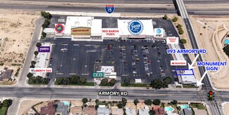 The Stater Bros Shopping Center located at the northwest corner of Armory Rd & Muriel Dr with visibility to Interstate-15 is easily the most vibrant shopping environment in the City of Barstow – the hustle and bustle of commerce is apparent in every corner of the center. Common areas are well maintained and the eclectic tenant mix affords a synergistic shopping experience conducive to foot traffic within the plaza benefiting all tenants. This particular availability is situated within the most prominent pad building of the shopping center – perched immediately at the signalized hard corner affording it’s tenants heavy exposure to the traffic as it stacks along Muriel Dr by utilizing the available signage at the rear of the building. Abundant visibility is also enjoyed via the stacked traffic as it approaches the signal traveling eastbound on Armory Rd and turning left onto Muriel Dr.