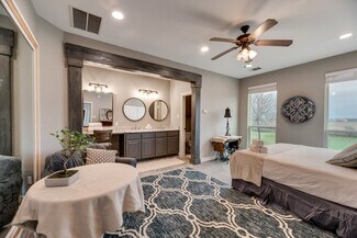 Prime opportunity to own land in Texas, with remarkable potential for land development and passive income stream using established structures on the property. The newly renovated, 5,486 sqft bardnominum on-site features a guest suite, event space, and commercial kitchen that is currently used as a wedding and event venue. This ideal spot can be utilized immediately to generate income. With 3 unfinished cabins and 1 cottage, potential rental opportunities are available or could be used as part of a retreat facility, glamping resort, and more. 67 acres of rolling hills and stunning views are the perfect place for a commercial venture or even an equestrian. Aside from established structures, there is plenty of developable land for further builds if needed.