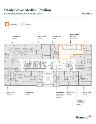 Direct access to Shady Grove Adventist Hospital and Fallsgrove Shopping Center. Adjacent to the Shady Grove Life Sciences Center. Less than one mile to downtown Crown and Rio Shopping Centers.
