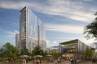 Flexible retail/food use spaces available at the North tower located along Rupertus Lane, a main pedestrian walkway connecting East & West areas of campus.