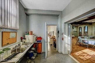 Massive building in downtown Hazleton. Currently being used as a place of worship, but the possibilities are endless. Please see the floorplans in the photos. The first floor has two very large rooms, foyer, bathrooms & kitchen. The second floor is setup with potential offices/classrooms & bathrooms. Zoned R-3. New owner will be responsible to make sure their use will be permitted per zoning.