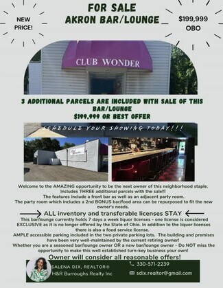 This bar/lounge currently holds 7 days a week liquor licenses - one license is considered EXCLUSIVE as it is no longer offered by the State of Ohio.