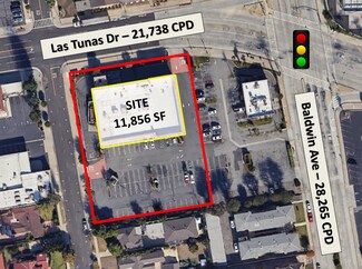 This highly visible property, located at the intersection of Baldwin and Las Tunas, offers exceptional exposure in a high-traffic area. Previously occupied by a CVS, this location benefits from prominent street frontage, with great visibility. The property includes ample parking with four ingress and egress points. Ideal for retail, restaurant, or QSR use, this space offers a unique opportunity to capitalize on a prime, high-traffic location.