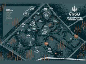 Yewaska, whose name evokes a connection to the forest, offers an experience focused on rejuvenation, learning, and a bond with nature. The site includes interactive interpretation trails, narrative paths, and environmentally respectful facilities, providing a complete immersion in a natural setting.