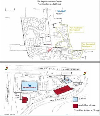 Brand New Shopping Center, Anchored by Walgreens, Ground Lease, Monument Signage Available, Uses included Traditional Retail, Banks, High Profile Office, High Profile Medical, Approved Drive Thru Facility East of Highway 29 and American Canyon Road and west of Broadway Street in American Canyon.