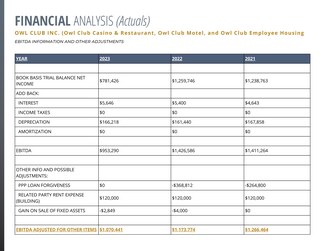 - Adjustments include rent, depreciation, and PPP forgiveness normalization