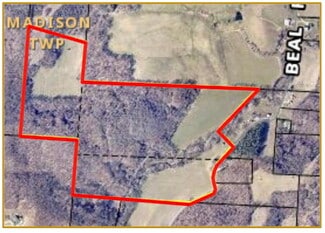 - Rural beauty with natural features such as wooded areas, open meadows, rolling terrain, and abundant wildlife with Claylick Creek running through the eastern edge of the property.