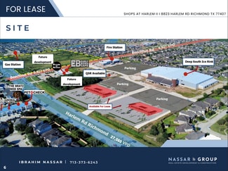Shops at Harlem Rd II is situated at the frontage of the new this new compound Development featuring a high-end SPORTS COMPLEX “DEEP SOUTH ICE SKATING RINK”($50 million Development, Completion January 2026), Featuring 2 ice skating rinks and stadiums, 4 Volleyball courts, Restaurant & Bar, and fire department( completion Q4 2025). Retail center will sit at the entrance of this complex having consumers drive by Shops At Harlem II arriving to the complex. The site sits under 2.5 few miles away from 99 Grand parkway and Westpark Tollway. Located in the center of many master planned communities such as HARVEST GREEN(over 2,600 homes), ALIANA(over 4,300 homes), TRILLIUM(over 3200 homes), and GRAND MISSION ESTATES.