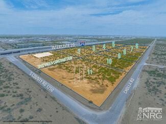 Take advantage of these premium land lots! Part of this 54.49 Acre tract, these lots have a combined ~2,320 feet of frontage along Interstate 20, providing excellent visibility and access. This developer is known for their large foot print, modern industrial service facilities and can build a custom solution for your needs from 14,000 to 80,000 SF. 20-ton cranes, wash-bays, executive office space, and more. The lots are located outside the city limits and features mostly level terrain, making it ideal for industrial or commercial use. Lots can be leased as shown or combined for more acreage to suit the user's needs. Available for lease or build-to-suit offering flexibility for a variety of development opportunities. Developer is building a 16,000 SF state-of-the-art spec building on Lot 1 - coming soon! Contact Justin Dodd to set up shop in this premium location to service the Midland-Odessa community. Click "View Video" button to see a 360 map view of the property!