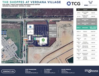 Two units are available at The Shoppes at Verdana Village (1,200–2,700± SF) a newly built Publix-anchored neighborhood center located at the main entrance to the 2,400-home Verdana Village community. Positioned at the SEC of Verdana Village Blvd & Corkscrew Rd, the site offers excellent visibility and access along this high-growth corridor in Estero. These flexible spaces are ideal for restaurant, retail, or service-oriented users seeking a high-traffic location alongside a strong tenant mix including Publix, UPS, Precision Hair Salon, and The Nail Lounge Spa.