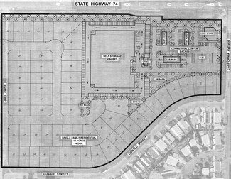 The property consists of approximately 7 acres of commercially zoned land at the SWC of Highway 74 and California Avenue. The proposed use for the property includes a self-storage facility, gas station and convenience store, car wash, and two fast food lots. All acreages included in the proposed site map on the following page are approximate as the property currently has no entitlements or approved plans. In terms of the property’s location, it is directly across the street from the Four Seasons at Hemet which is an active adult community consisting of 1,106 homes. Additionally, it is a few miles from various new home communities in Winchester and hasapproximately 1,200 feet of frontage on Highway 74 which has traffic counts of 35,000+ cars per day. The remaining +/- 15 acres