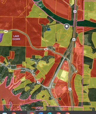 Exceptional 98.4-acre development opportunity with highway access and river frontage. Unlock the potential of this prime track of land, perfectly positioned with direct MODOT-approved highway access and over 1,000 feet of Osage River frontage. Enjoy seasonal views of the Bagnell Dam and the lake, adding both natural beauty and development appeal. This property is currently zoned residential, but is surrounded by parcels already zoned commercial--making rezoning a strong possibility for commercial, mixed-use,  recreational development, or a dense housing development.  Whether you envision a residential subdivision, commercial park, resort-style destination, or a combination, the location and infrastructure offer limitless potential. With nearby utilities, excellent road exposure, and unmatched access to water features, this is a rare opportunity in one of Missouri's most dynamic growth corridors. Don't miss out--opportunities like this are nearly impossible to duplicate.