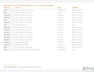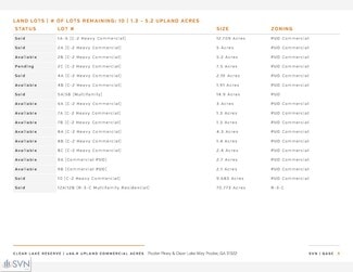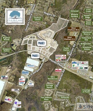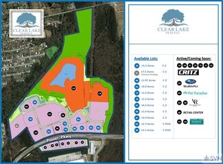 SVN is pleased to present Clear Lake Reserve, which is a master planned, mixed-use development consisting of Commercial, Retail and Office land opportunities located along Pooler Parkway. The master infrastructure work within the development has been completed, which includes: (3) access points from Pooler Parkway, of which (2) will be signalized in the future; interior roads; utilities within the property boundaries; and master detention. In addition, Parcels 6A-9B have been cleared and rough graded. Some parcels are available for further subdivision. Please call for pricing.