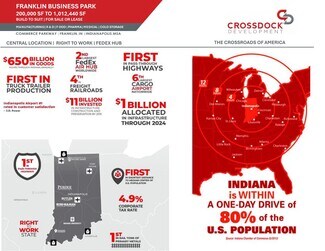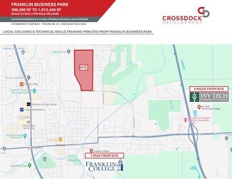 1 Million SF Class A Facility that is located on 100 Ac. Shovel Ready Property in Franklin Business Park. The property has abundant Day 1 Power of 40 MW and is located 2 miles from I-65 and 12 miles from I-69 and 22 Miles from FedEx Express World Hub-Indianapolis (FedEx 2nd Largest in the World). Zoning is light industrial (IL) and can accommodate light industrial assembly, processing, and distribution; as well as data center capable with sizable existing utility infrastructure to the site. Located minutes from the property, Ivy Technical and Franklin College provide abundant technical labor. Employees enjoy an amazing work environment with access from the property to 20 miles of trails to multiple parks and Downtown Franklin's vibrant art and festival scene.