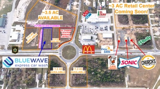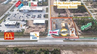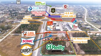 The site is conveniently located next to El Faro Grocery Store, McDonalds, Sonic, Church's Chicken, Little Caesars Pizza, Dominos, O'Reilly Auto Parts, Cottonwood Elementary, Liberty County Annex, Community Center W/Splashpad & Soccer Fields, DG Market and Builder Model Homes nearby. Price is $9-$12 per Ft. depending on location. Price shown is for 1 acre at $9/Ft for rear of 8.6AC parcel.