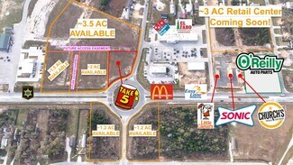 The site is conveniently located next to El Faro Grocery Store, McDonalds, Sonic, Church's Chicken, Little Caesars Pizza, Dominos, O'Reilly Auto Parts, Cottonwood Elementary, Liberty County Annex, Community Center W/Splashpad & Soccer Fields, DG Market and Builder Model Homes nearby. Price is $9-$12 per Ft. depending on location. Price shown is for 1 acre at $9/Ft for rear of 8.6AC parcel.