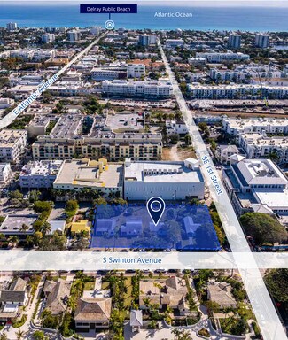 Colliers is pleased to present Delray Social located on two parcels at 104 SE 1st Avenue and 27 S Swinton Avenue. Positioned within Delray Beach’s vibrant downtown core, the site benefits from immediate proximity to award-winning restaurants, boutique retail, hospitality, and entertainment destinations along Atlantic Avenue, as well as convenient access to the Atlantic Ocean. The surrounding area continues to experience significant residential and mixed-use development activity.27 S Swinton Avenue comprises 0.73 acres and is occupied by four historic single-family residences. The homes contain a total of 5,459 gross square feet per the county property appraiser. The current zoning allows multiple permitted uses. As a reference, the subject’s proposed improvements for the approved social club consist of a restaurant building, spa building, and two storage/restroom pavilions. The proposed improvements increased the total enclosed area to approximately 10,000 SF. One block away is 104 SE 1st Avenue, a 0.17-acre vacant site. The zoning for both sites is CBD/Old School Square Historic Arts District (OSSHAD).